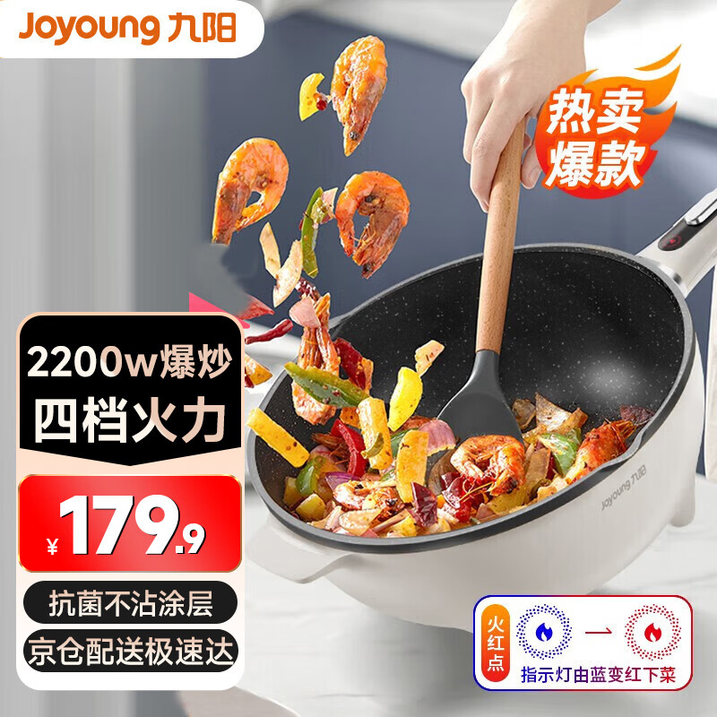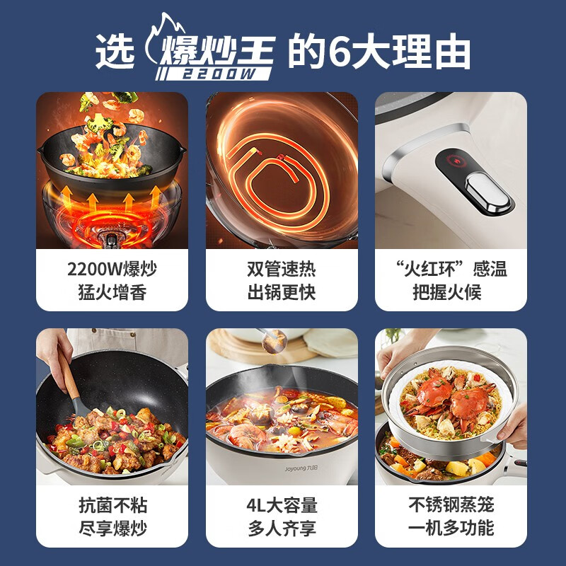 九阳电炒锅 家用大功率爆炒多用途锅 电煮锅 电火锅 电蒸锅 电热锅 不粘4L升多功能蒸煮一体料理锅 【爆炒王】单锅款GC52 4L价格:269.90元!
