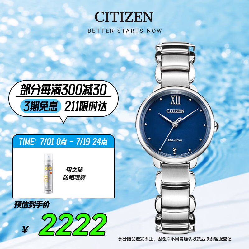 西铁城(CITIZEN)手表女日韩表L系列光动能贝母钢带时尚学生送长辈礼物EM0920-86L价格:2472.00元!