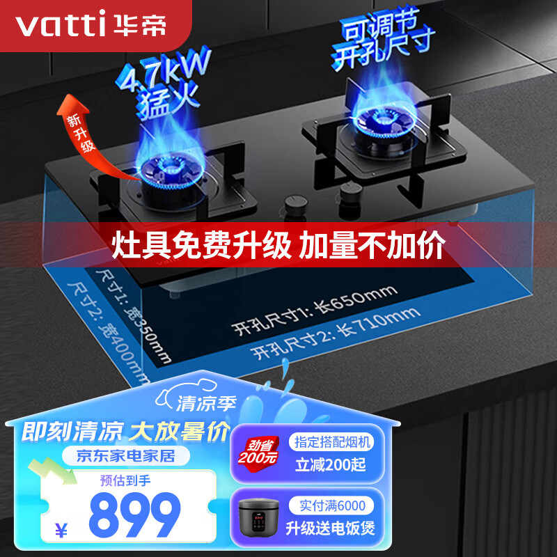 华帝(VATTI)家用燃气灶4.7kW嵌入式猛火易打理玻璃面板灶具灶台 换灶不改孔JZT-i10085B(天然气)价格:899.00元!