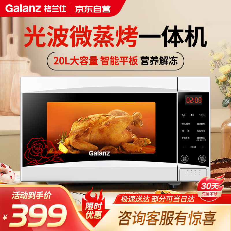格兰仕智能家用微波炉 平板速热光波炉 微烤一体 700W 20升容量 白色 G70F20CP-D2(S0)价格:399.00元!