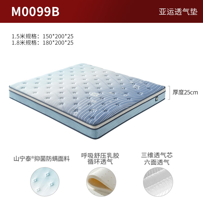 顾家家居抗菌防螨乳胶亚运床垫1.5米*2米乳胶床垫透气垫M0099B价格:1999.00元!
