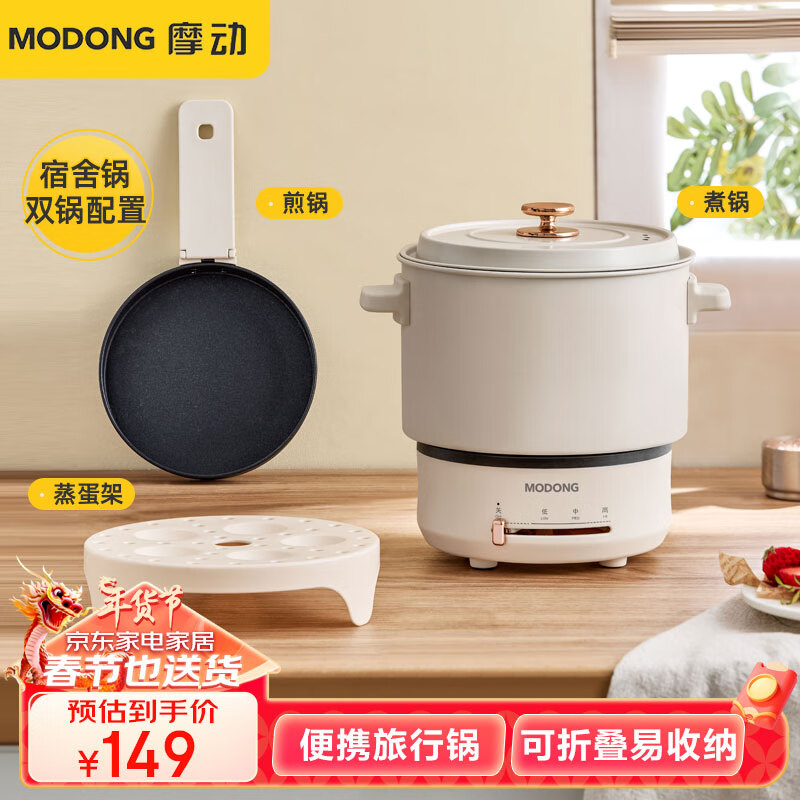 摩动电煮锅旅行锅折叠锅电热锅出国110v-220V双电压锅迷你小火锅 折叠锅 配煮锅+煎锅+蒸蛋架MD-HG200价格:149.00元!