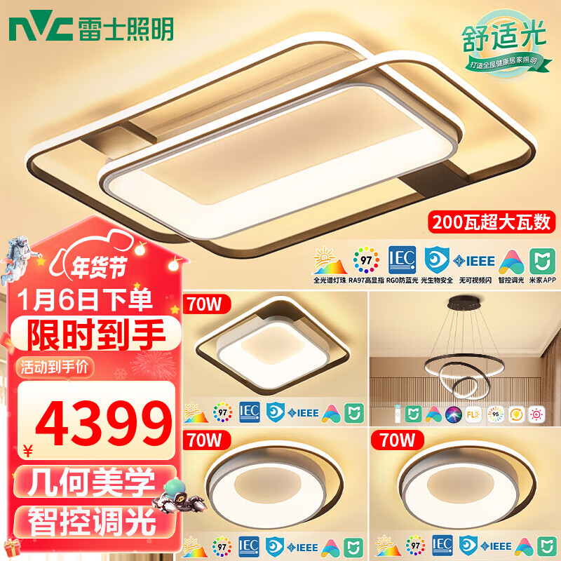 雷士(NVC)LED吸顶灯全屋灯饰客厅卧室餐厅 语音全智控Ra95-大尺寸环宇A价格:4899.00元!