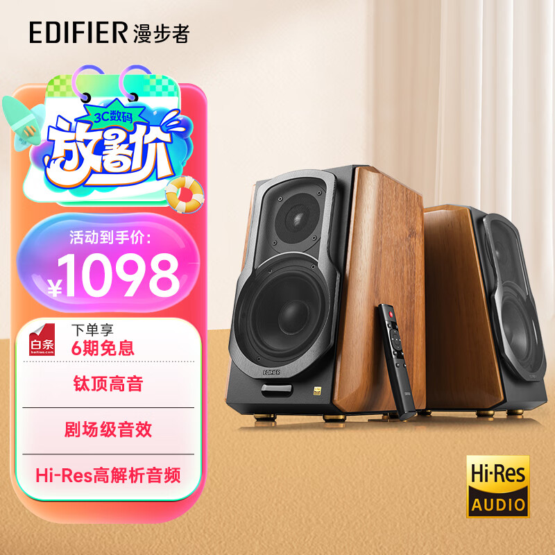 漫步者(EDIFIER)S1000MKII 新经典旗舰 HIFI级2.0音箱 蓝牙音箱 音响 电脑音箱 电视音响价格:1098.00元!