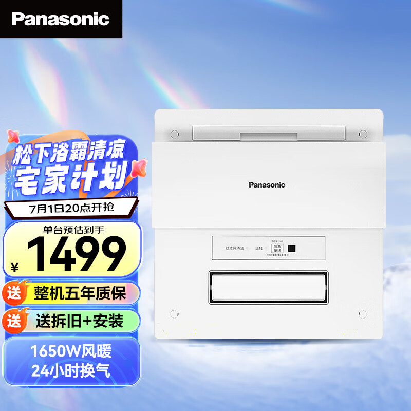 松下(Panasonic)风暖浴霸 浴霸暖风排气一体 通用吊顶式 FV-RB16E1珍珠白价格:1799.00元!