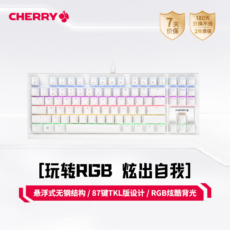 CHERRY樱桃MX1.1雪原极光 机械键盘 游戏键盘 悬浮式无钢结构 87键有线键盘 RGB灯效 电脑键盘 白色 红轴价格:399.00元!