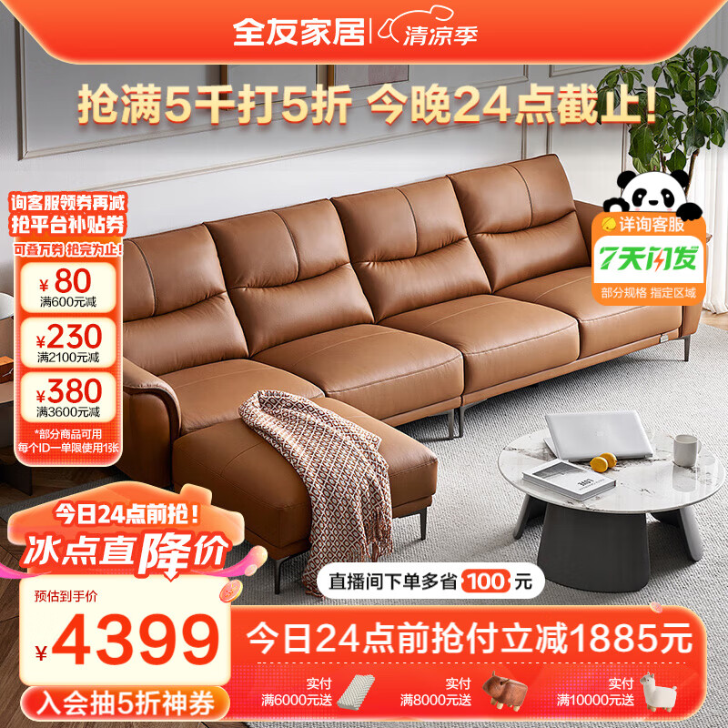 全友家居 皮艺沙发客厅现代简约头层牛皮直排一字真皮沙发家具112011价格:6284.29元!