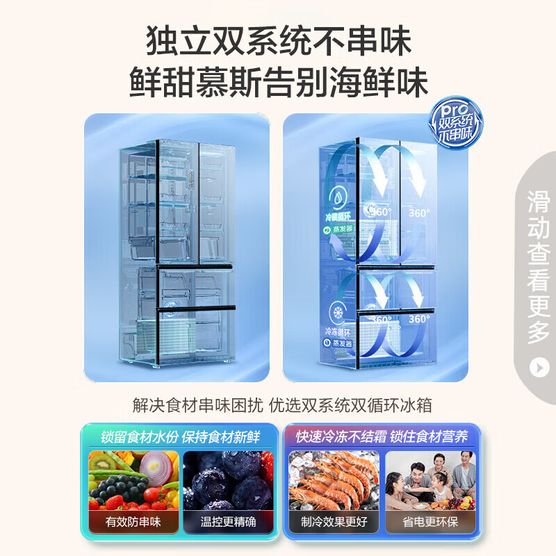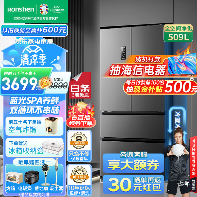 容声冰箱四开门509升变频一级能效超薄家用无霜除菌双循环双系统家用法式冰箱BCD-509WD18MP[官方直发]价格:3499.00元!