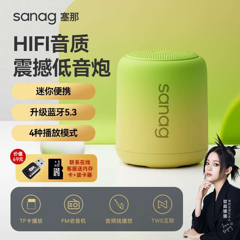 SANAG塞那x6s迷你无线蓝牙小音箱便携式蓝牙音响户外低音炮收音机防尘防水长续航 黄渐绿价格:167.00元!