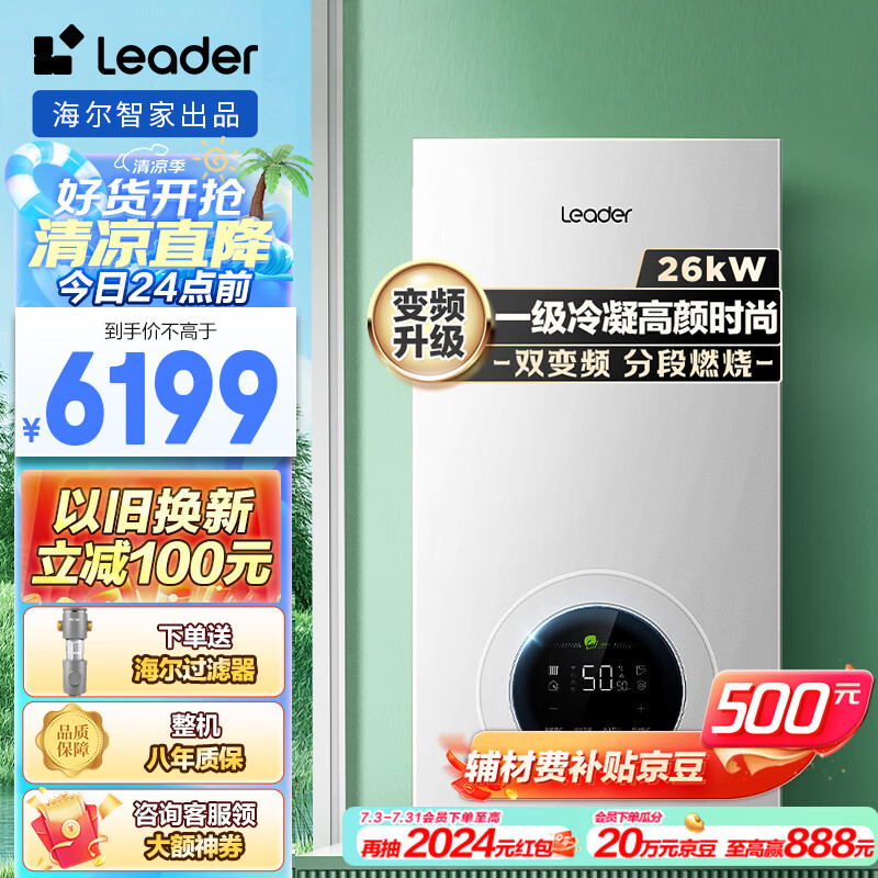 海尔(Haier)智家出品Leader双变频一级能效冷凝壁挂炉天然气采暖炉热水器地暖恒温以旧换新LL1PBD26-LN1价格:6199.00元!