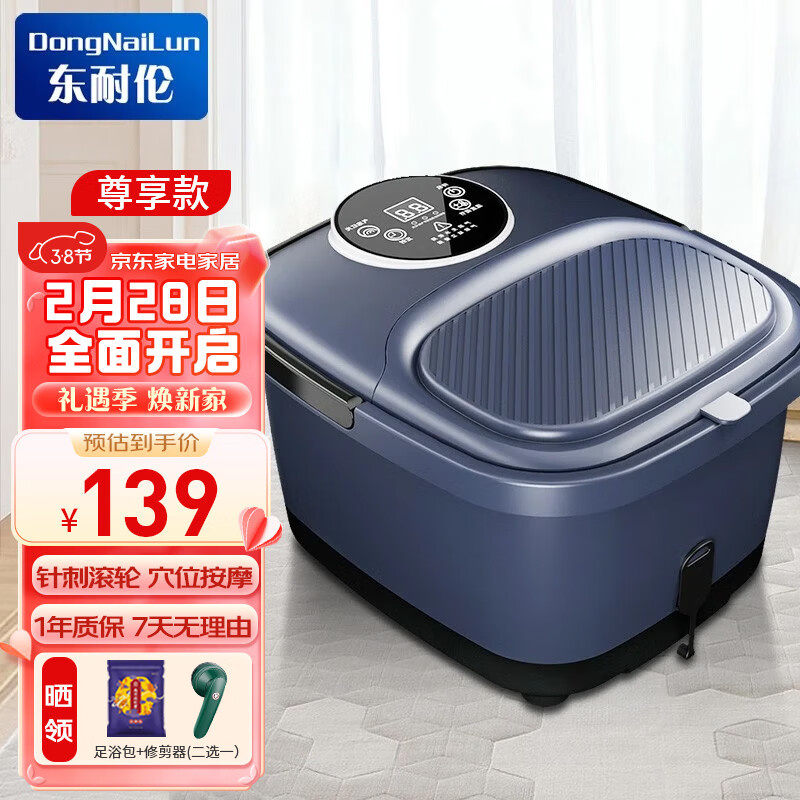 东耐伦泡脚桶足浴盆自动防漏电保护 按摩洗脚盆智能恒温加热泡脚盆脚动按摩洗脚桶送父母送长辈节日礼物 HS-ZY3 藏青色滚轮按摩尊享款价格:137.85元!