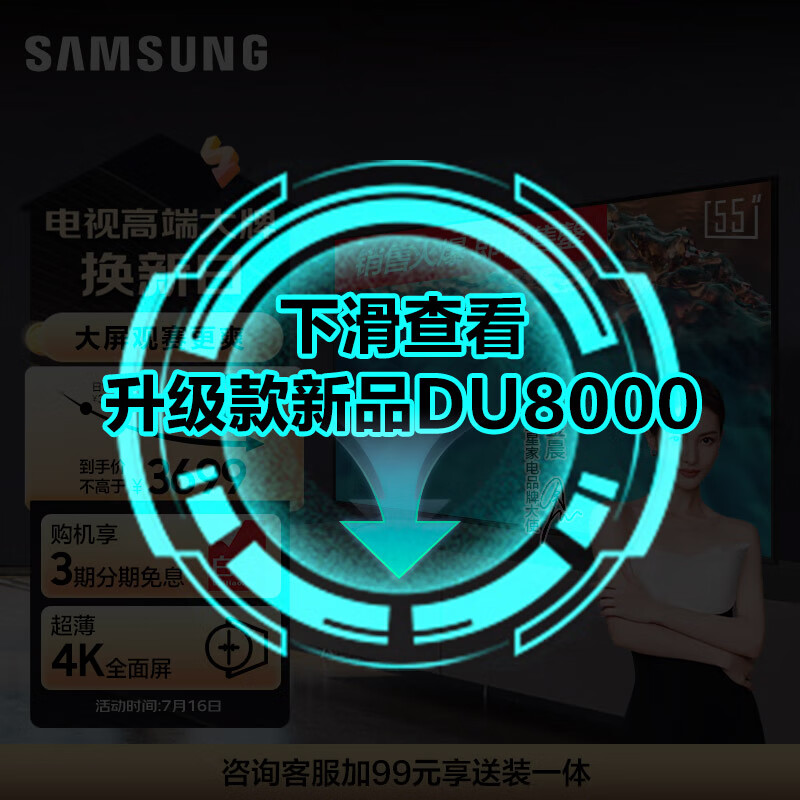 三星(SAMSUNG)55CU8000 55英寸 平板液晶电视 超薄4K屏 AI智能补帧 无开机广告 UA55CU8000JXXZ【欧洲杯】价格:3699.00元!