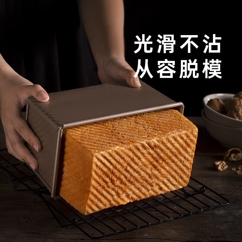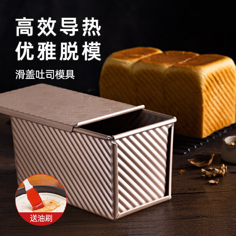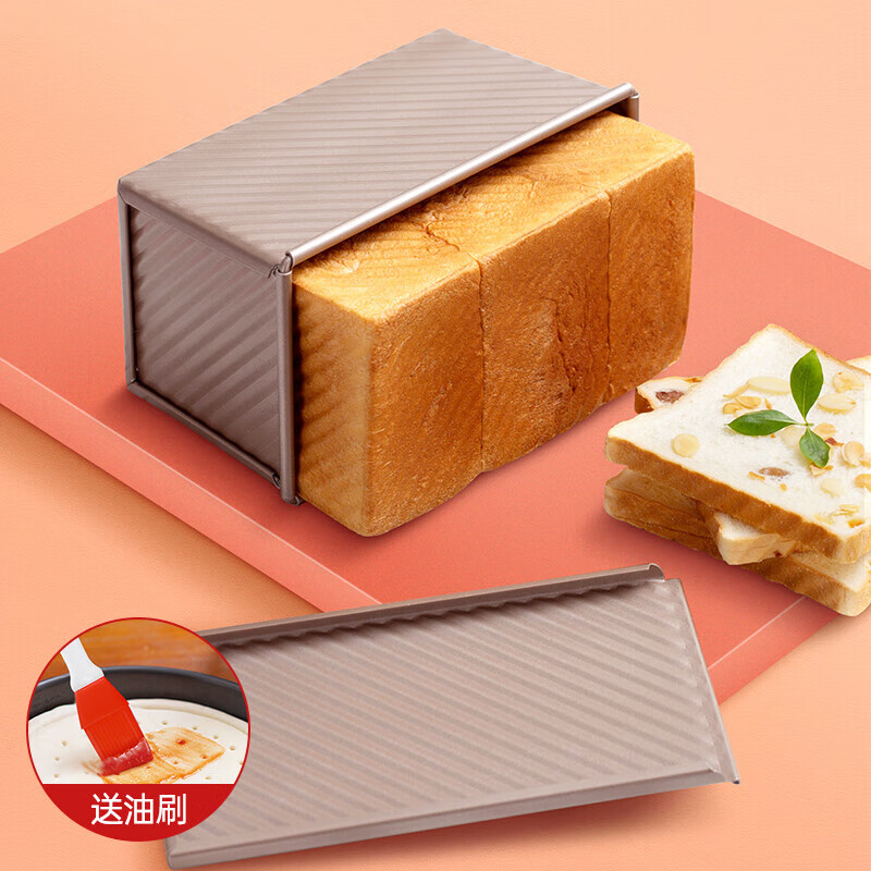 魔幻厨房吐司模具低糖面包模具吐司盒带盖450g烘焙工具烤箱蛋糕波纹土司盒价格:39.90元!