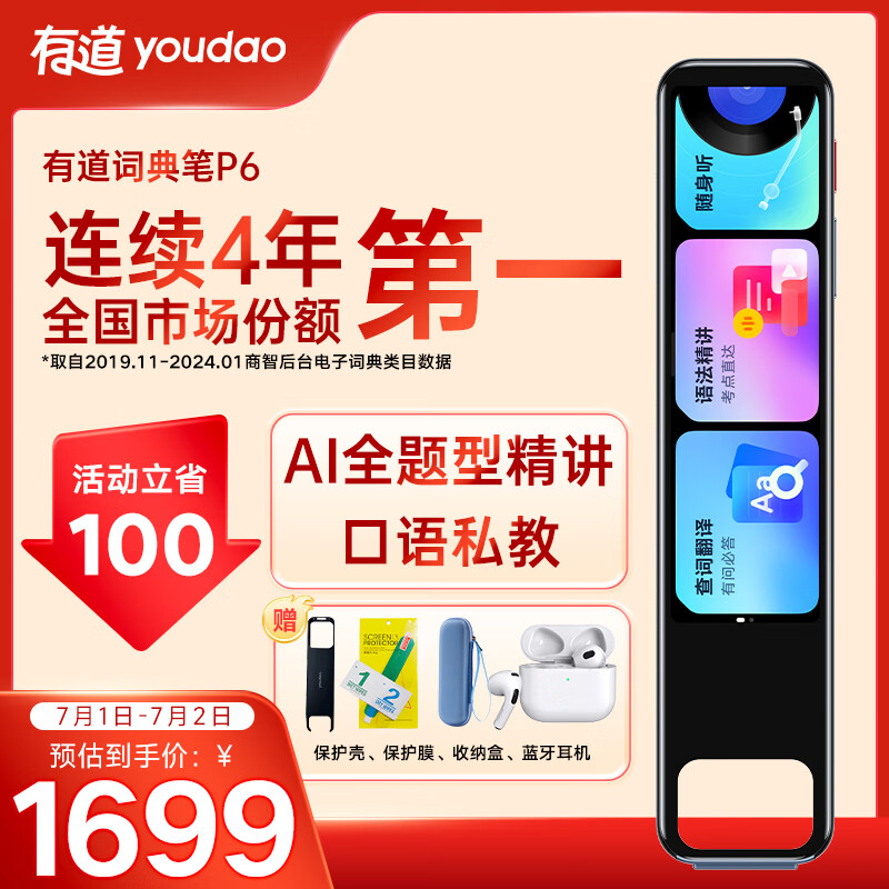 有道网易有道词典笔P6 英语学习机点读笔翻译笔神器 电子词典单词笔 学习笔扫读笔 百种语言价格:1699.00元!