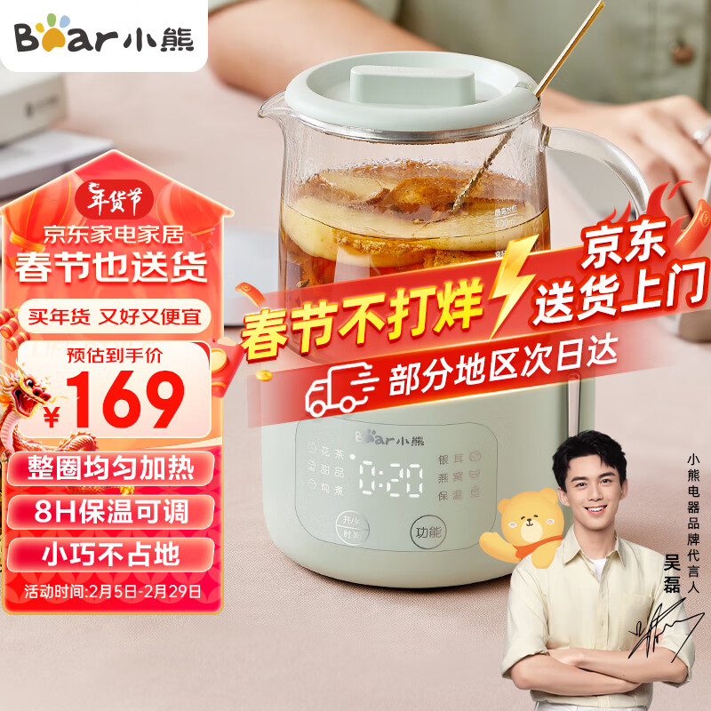 小熊(Bear)迷你养生壶养生杯 电炖杯电热杯煮花茶壶烧水壶办公室杯子0.4L全玻璃杯体YSH-F04E1价格:169.00元!