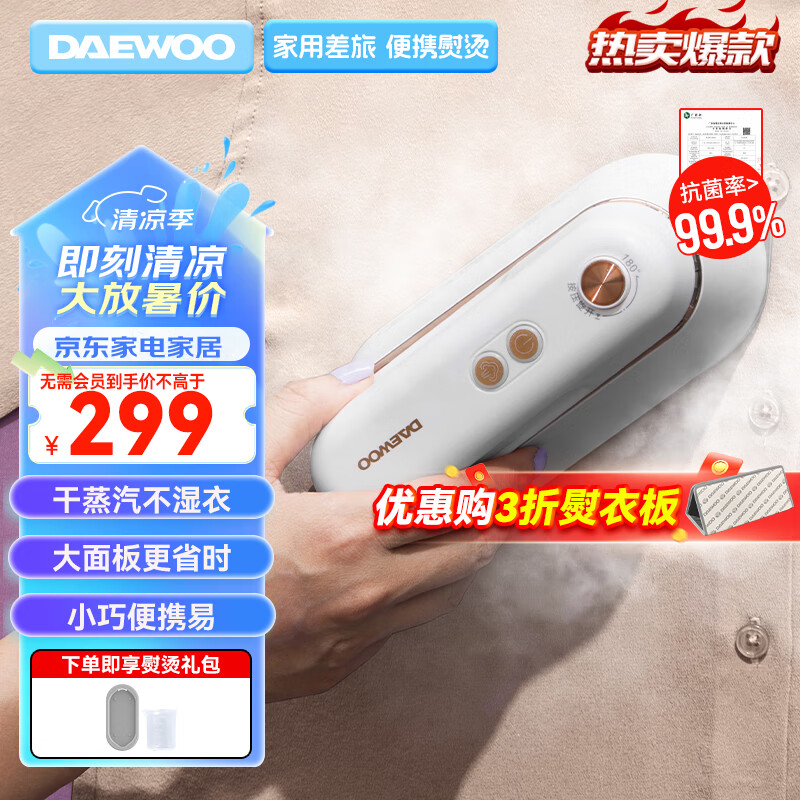 大宇(DAEWOO)挂烫机家用手持熨烫机蒸汽电熨斗 熨衣机旅行出差便携式小型除菌除螨熨斗礼品团购 HI-029-BAI价格:349.00元!