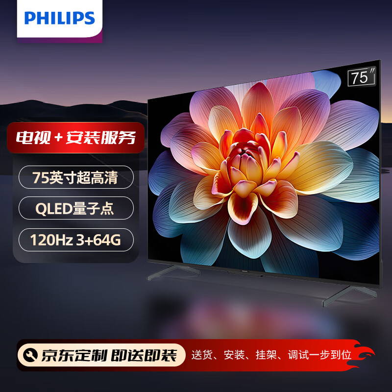 飞利浦(PHILIPS)75英寸 4K超高清智慧屏 QLED量子点120Hz 3+64G 远场AI语音 液晶平板电视机 75PQF8599/T3价格:4728.00元!