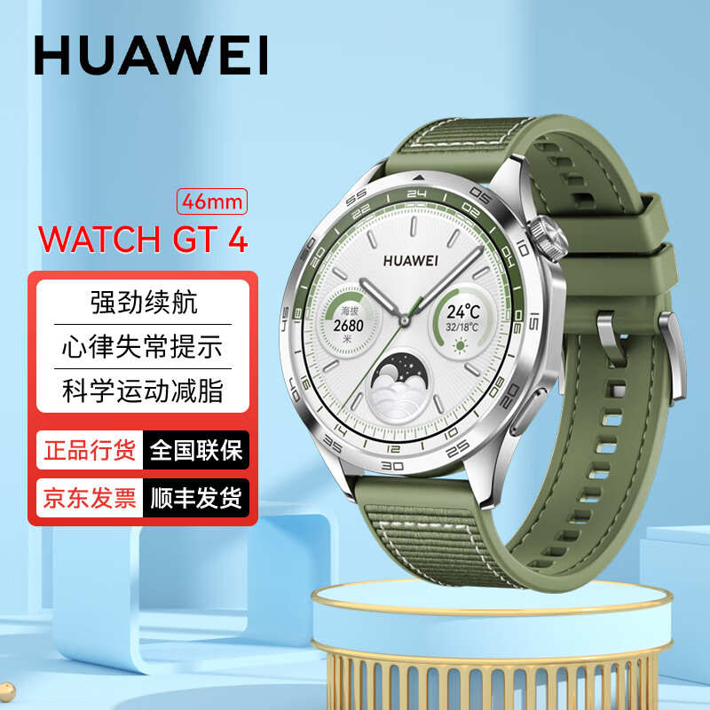 华为(HUAWEI)WATCH GT 4 运动手表 智能手表 心律失常提示 科学运动减脂 46mm 云杉绿绿色复合编织表带价格:1768.00元!