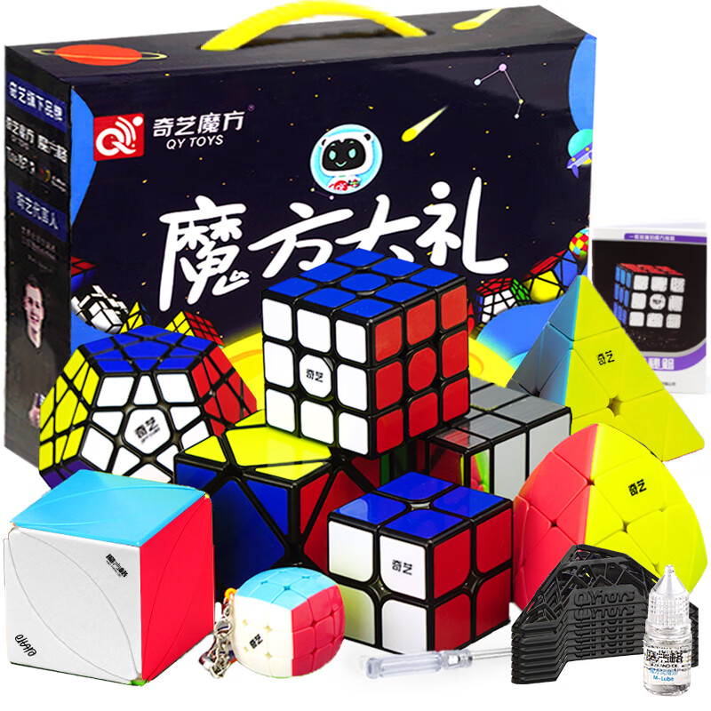 奇艺9件套装魔方礼盒 二三阶23阶镜面金字塔枫叶异形玩具送教程 黑色价格:148.00元!