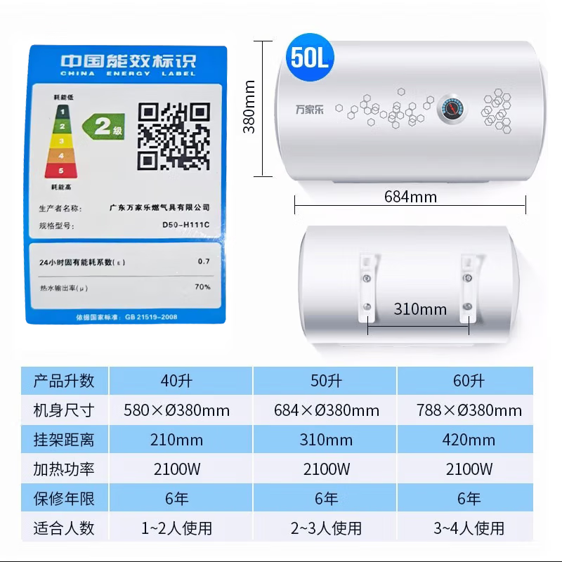 万家乐(Macro) H111C家用大容量电热水器电加热蓄水式经济节能电热水器 D50-H111C(50升)价格:579.00元!