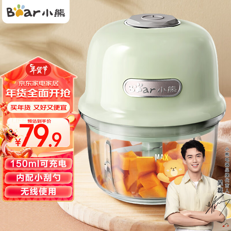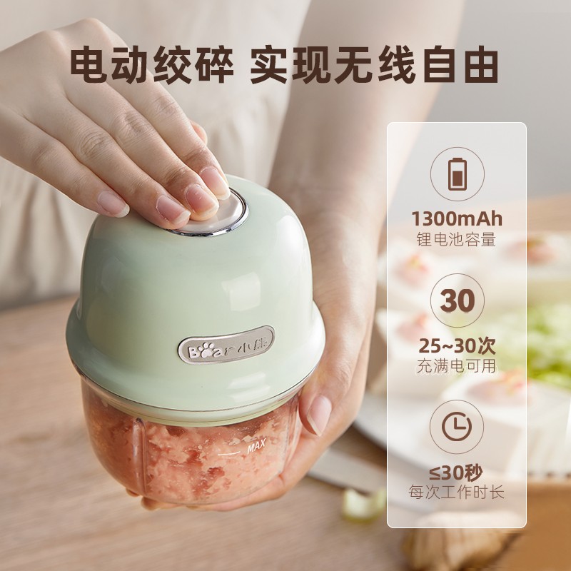 小熊(Bear)绞肉机家用 便携婴儿辅食机 电动捣蒜器 拉蒜器 无线多功能绞蒜器 蒜泥神器 QSJ-E40B1 150ml价格:79.90元!