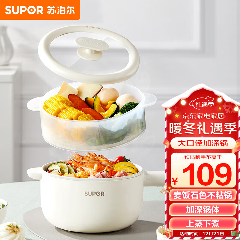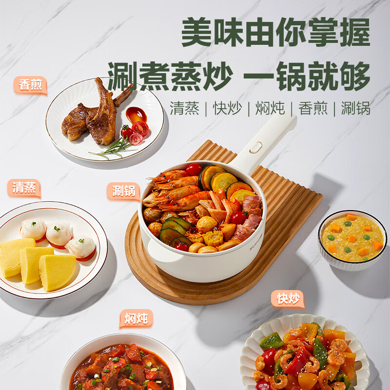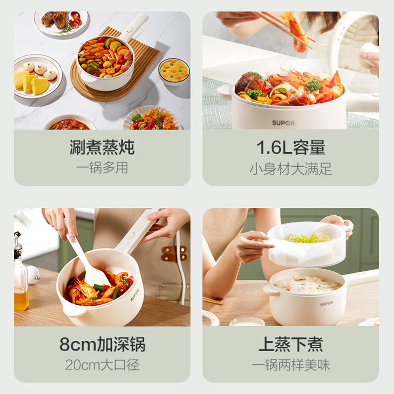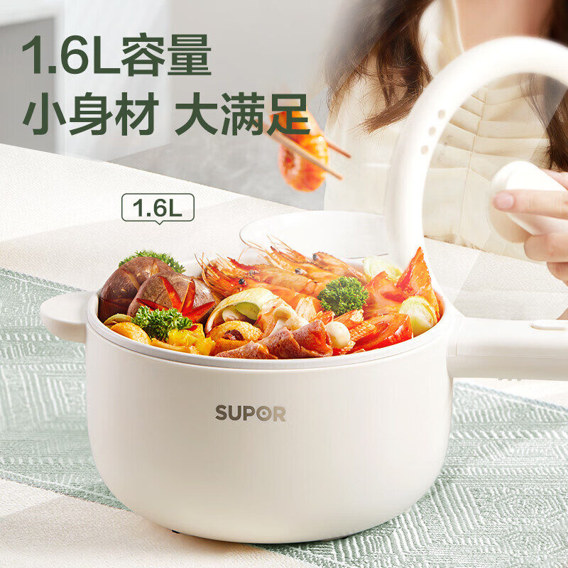苏泊尔(SUPOR)电煮锅 电炒锅 宿舍小电锅 电蒸锅 电热锅 学生多功能泡面电火锅多用途锅 H20YK840A 1.6L配蒸笼价格:99.00元!