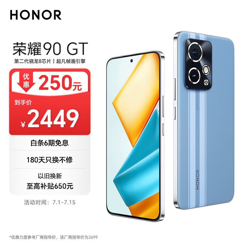 荣耀90 GT 第二代骁龙8旗舰芯 超凡帧画引擎 荣耀绿洲护眼屏 5000mAh轻薄长续航 OIS 16+256 GT蓝 5G直屏价格:2449.00元!