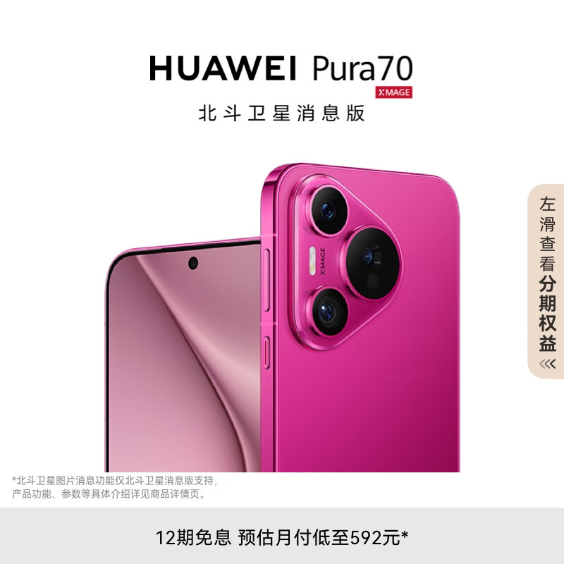 华为(HUAWEI)Pura 70 12GB+1TB 樱玫红 北斗卫星消息版 超高速风驰闪拍 第二代昆仑玻璃 华为P70智能手机价格:7099.00元!
