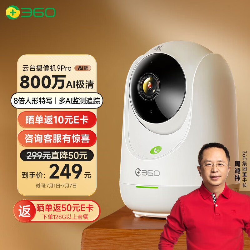 360摄像头9pro 800万云台 家用摄像头 家用监控摄像机 手机远程监控器360度夜视全景 婴儿看护器价格:249.00元!