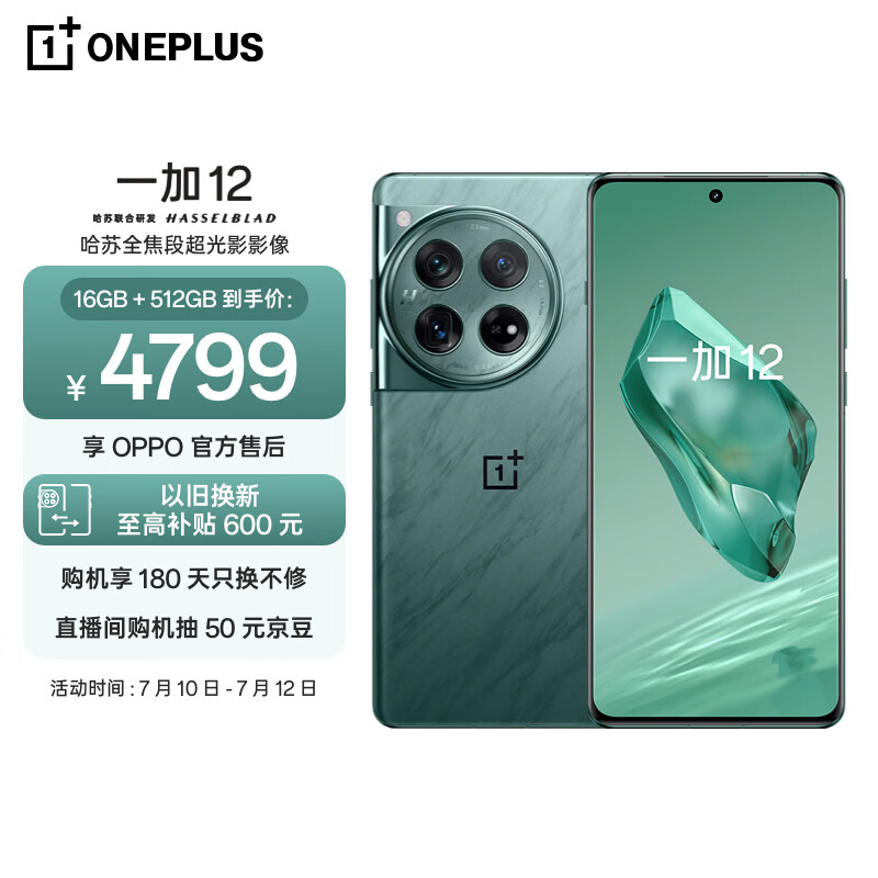 一加 12 16GB+512GB 苍绿 哈苏全焦段超光影影像 第三代骁龙8旗舰芯片 OPPO AI 5G无线充游戏拍照手机价格:4799.00元!