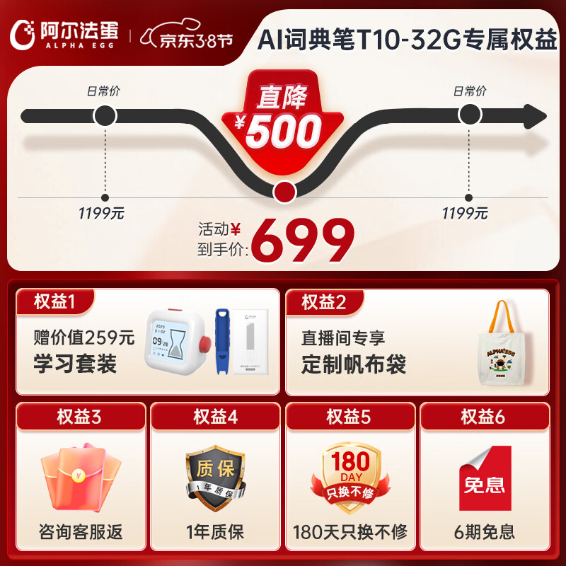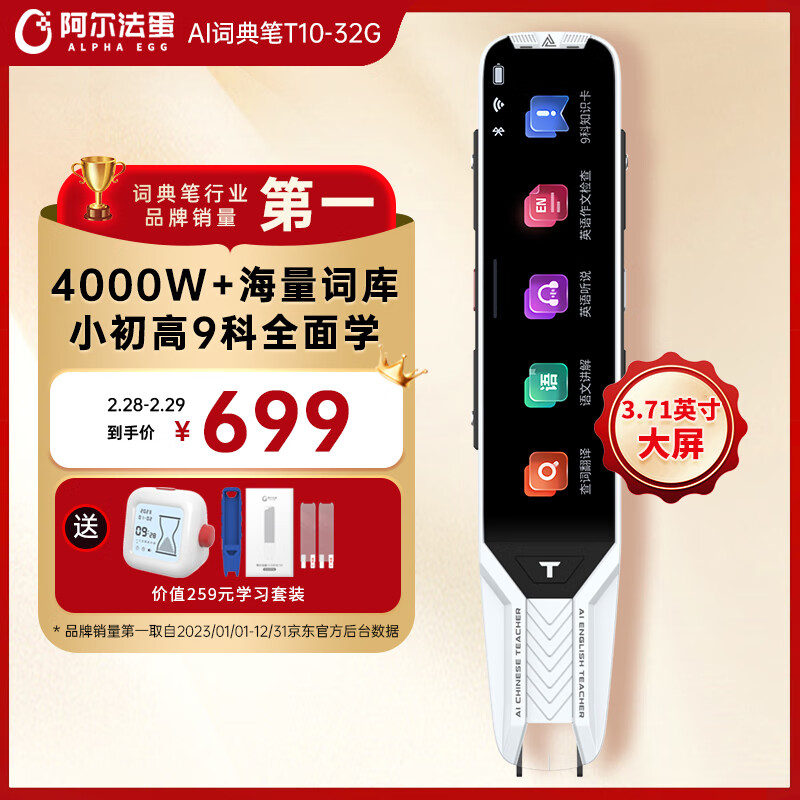 阿尔法蛋AI词典笔T10 32G版 英语点读笔神器 中英翻译笔 小初高电子词典学习笔扫描笔价格:699.00元!