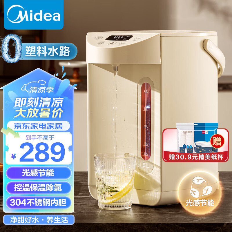 美的(Midea)0塑料水路电水瓶电热水壶304不锈钢5L大容量智能多段温控恒温烧水壶除氯光感节能热水瓶01C价格:289.00元!