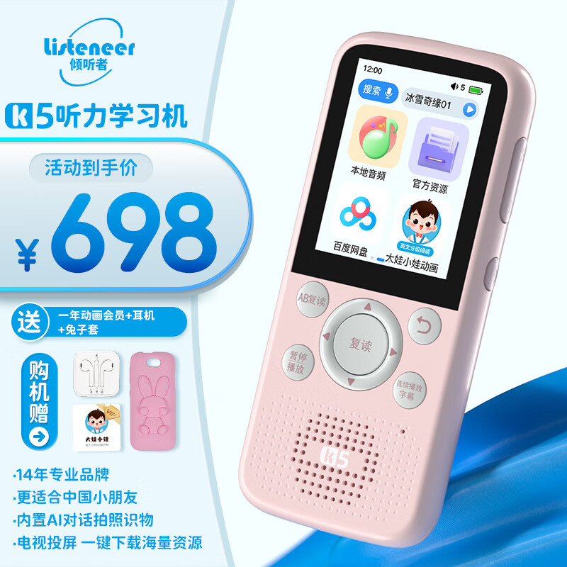 listeneer复读机倾听者K5听力宝智能听力学习机古诗词英语学习考研神器 水仙粉128G价格:838.00元!