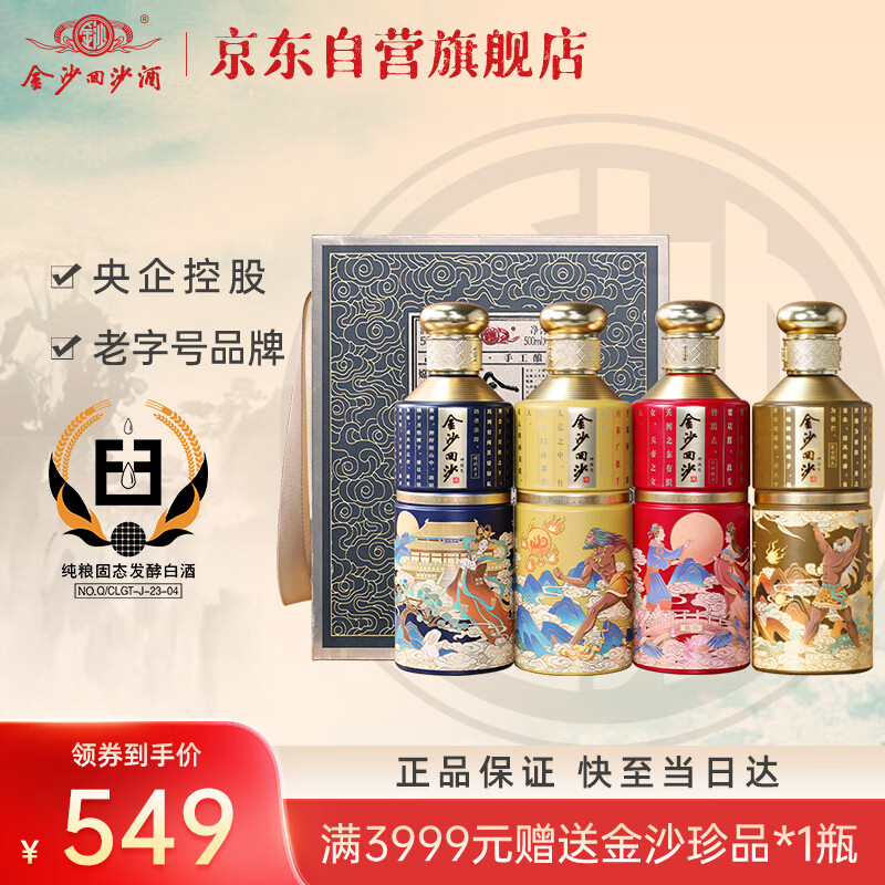 金沙回沙酒 神话志 酱香型白酒 53度 500ml*4瓶礼盒装 纯粮食酱酒价格:659.00元!