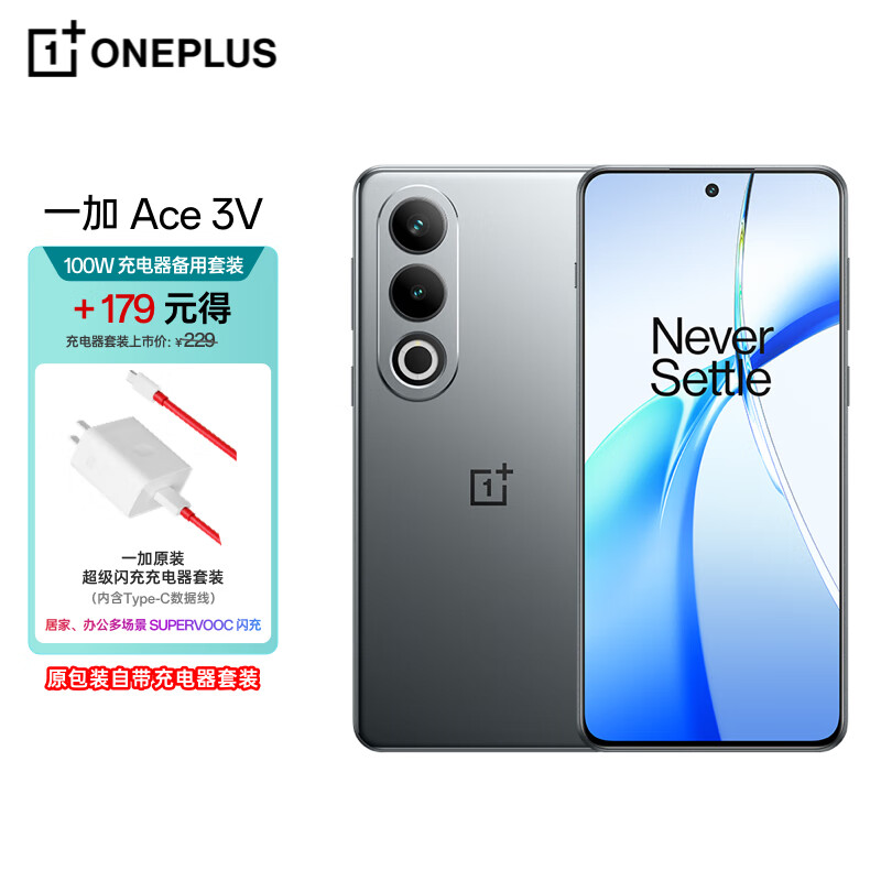 一加 Ace 3V 12GB+512GB 钛空灰 高通第三代骁龙 7+ 芯片 OPPO AI 5G直屏游戏手机【有线充电器套装】价格:2478.00元!