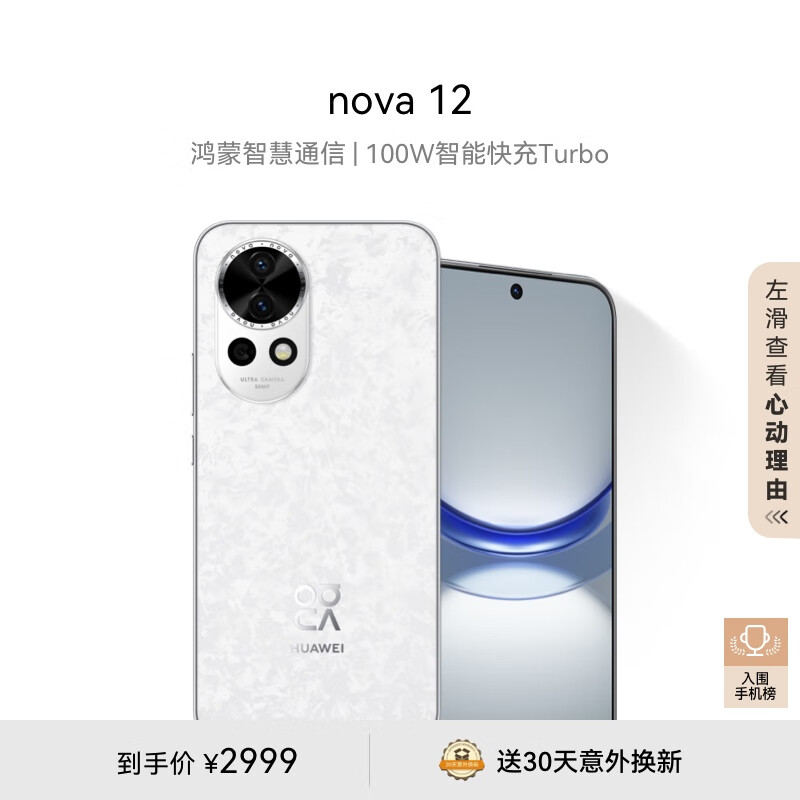 华为nova 12 100W智能快充Turbo 前置6000万4K超广角人像 256GB 樱语白 鸿蒙智慧通信华为智能手机价格:2899.00元!