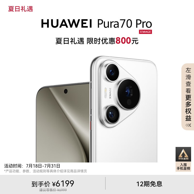 HUAWEI Pura 70 Pro 雪域白 12GB+512GB 超高速风驰闪拍 超聚光微距长焦 华为P70智能手机价格:6199.00元!