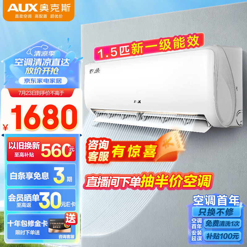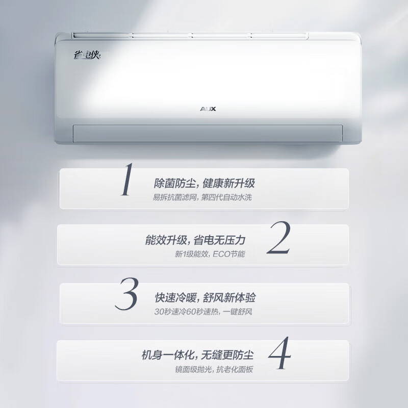 奥克斯空调挂机1.5匹 一级能效 家用壁挂式 冷暖变频节能省电侠KFR-32GW/BpR3AQS1(B1)一键舒风价格:1680.00元!