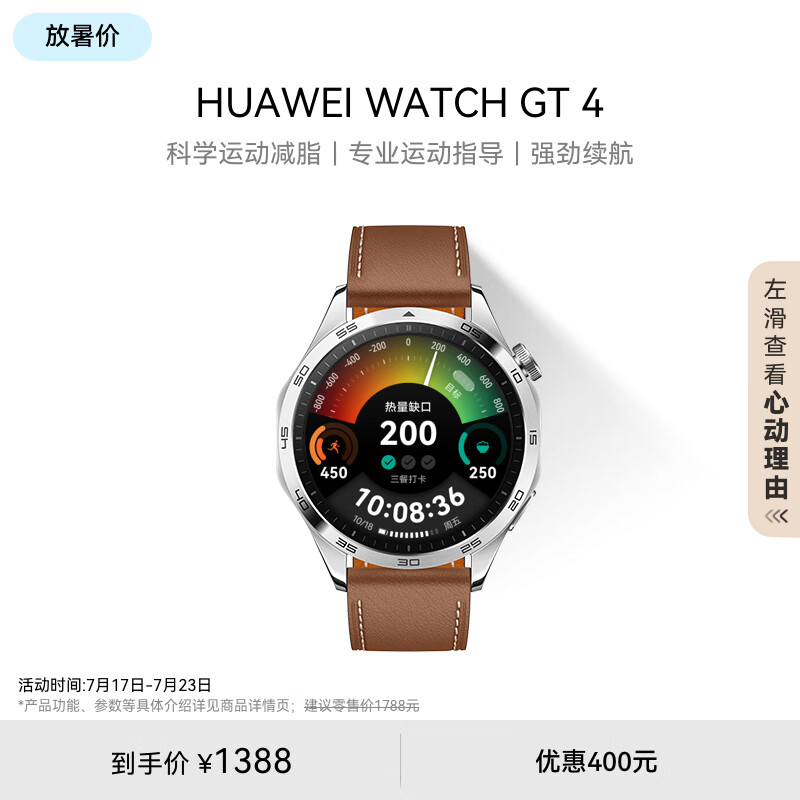 华为WATCH GT4华为手表智能手表呼吸健康研究心律失常提示华为gt4手表山茶棕 送男友男表46mm价格:1388.00元!