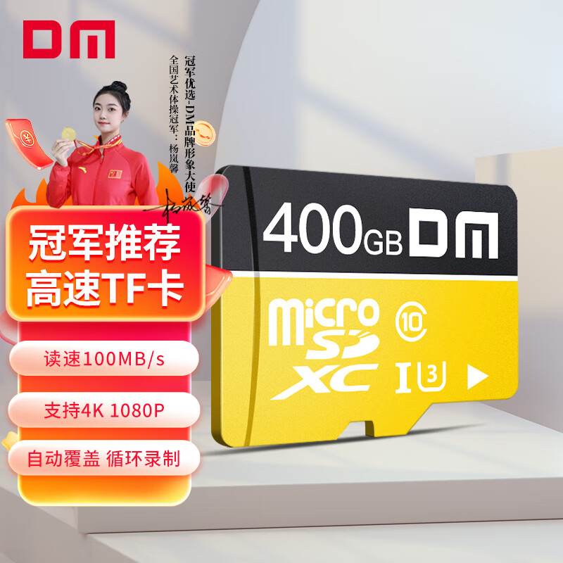 DM大迈 400GB TF(MicroSD)存储卡 黄卡 C10 手机行车记录仪监控摄像头专用高速内存卡价格:129.90元!