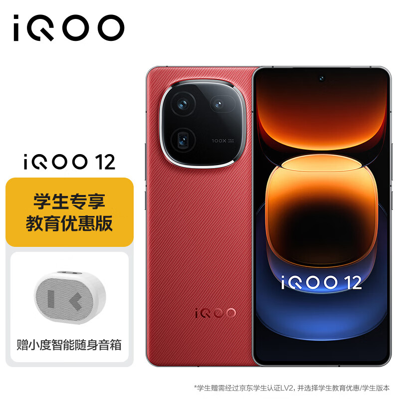 vivo【教育优惠-学生专享价】iQOO 12 12GB+256GB燃途版 第三代骁龙 8 自研电竞芯片Q1 5G手机价格:3689.00元!