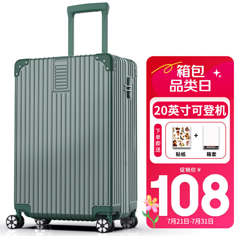 SOO行李箱男学生旅行箱拉杆箱女万向轮 A210密码皮箱子20英寸墨绿色价格:108.00元!
