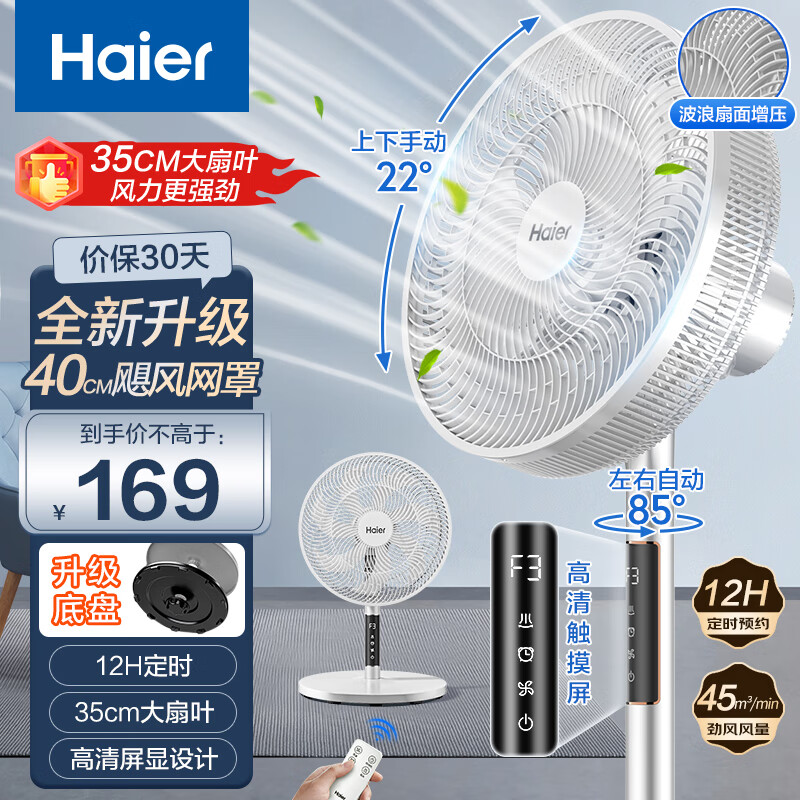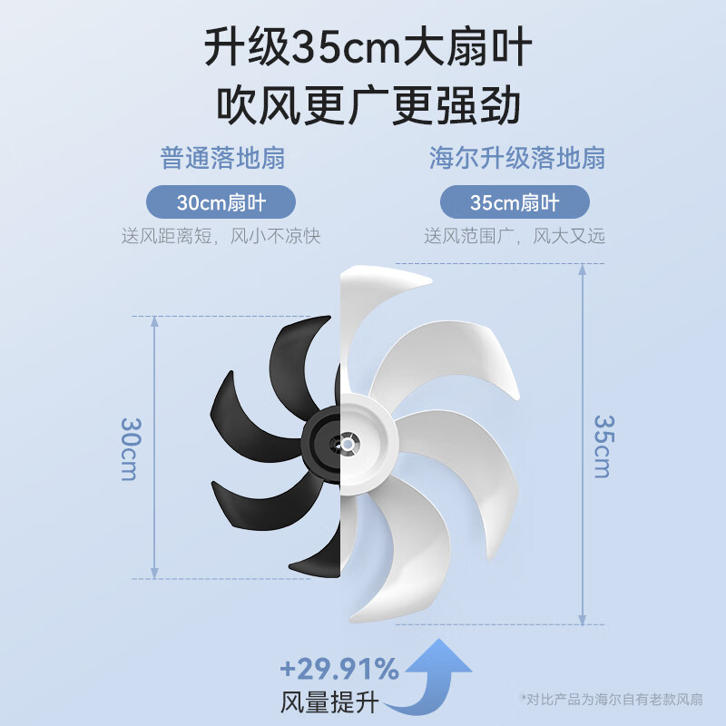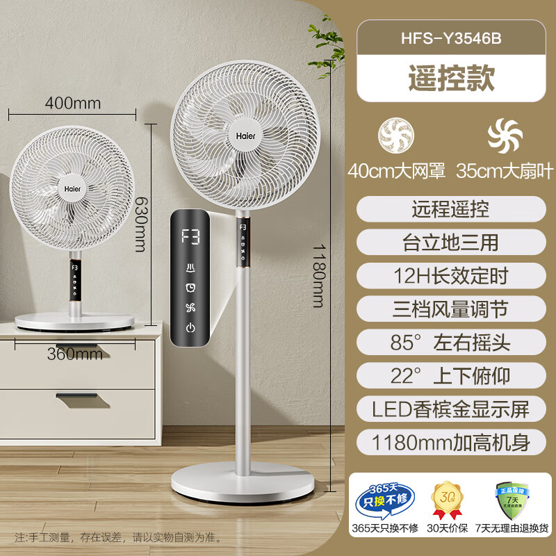 海尔(Haier)电风扇家用七叶摇头大风量电扇轻音节能桌面小风扇台式柔风遥控定时落地扇 HFS-Y3546B价格:179.00元!