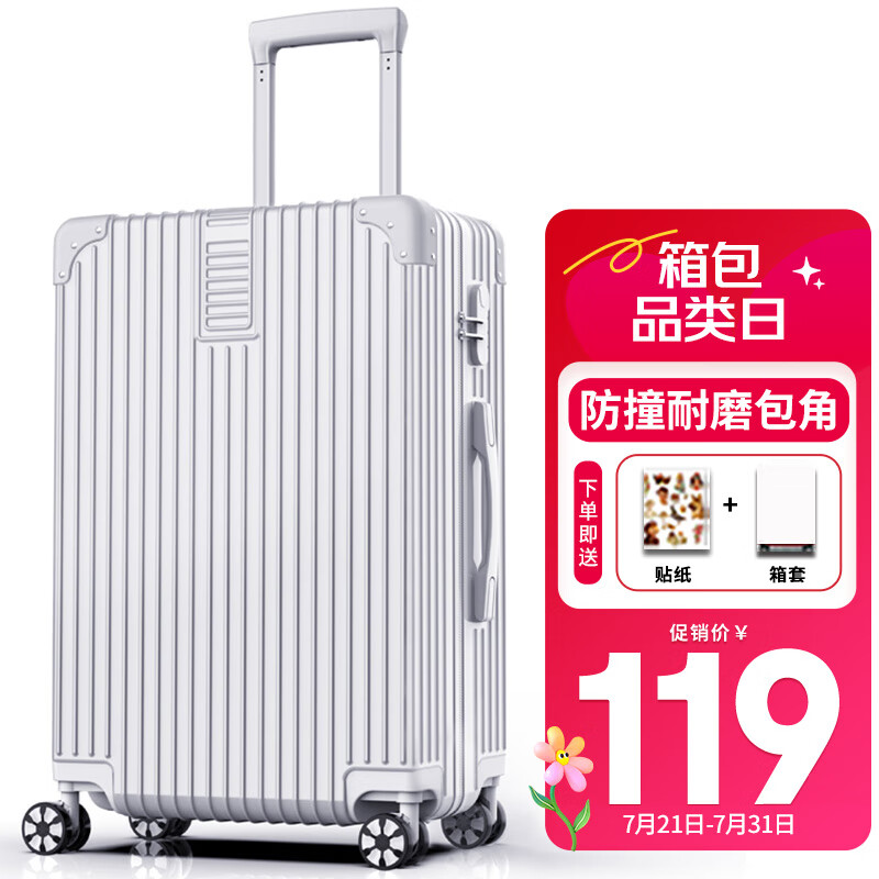 SOO行李箱男学生旅行箱拉杆箱女万向轮 A210密码皮箱子24英寸奢华银价格:119.00元!
