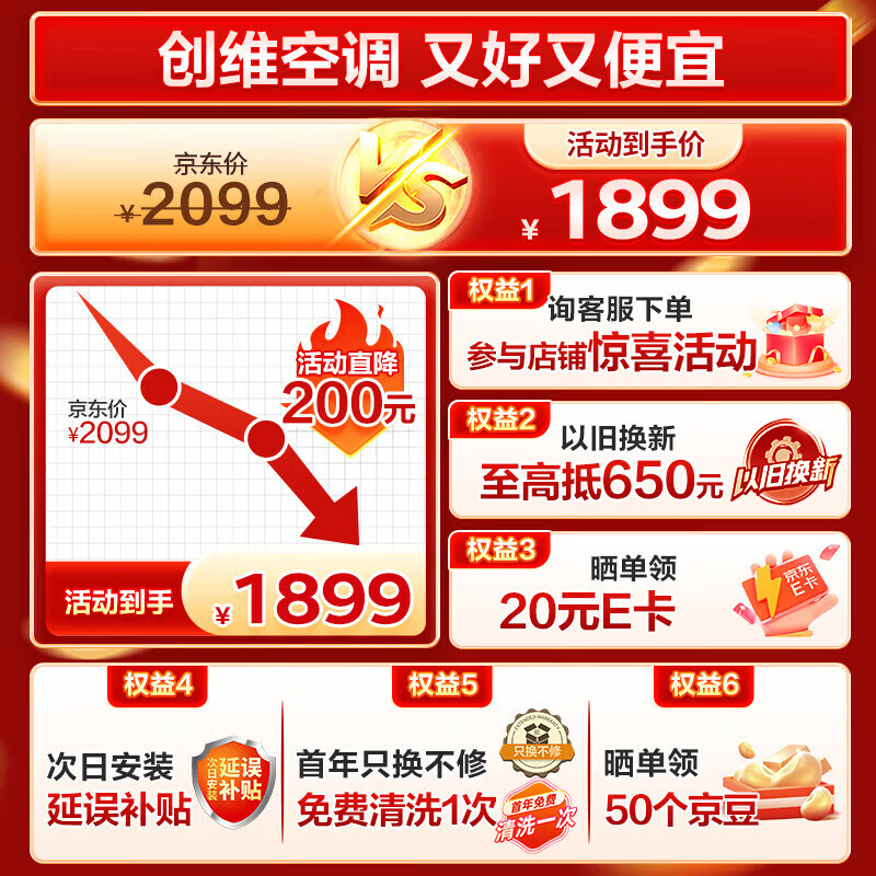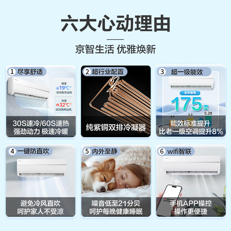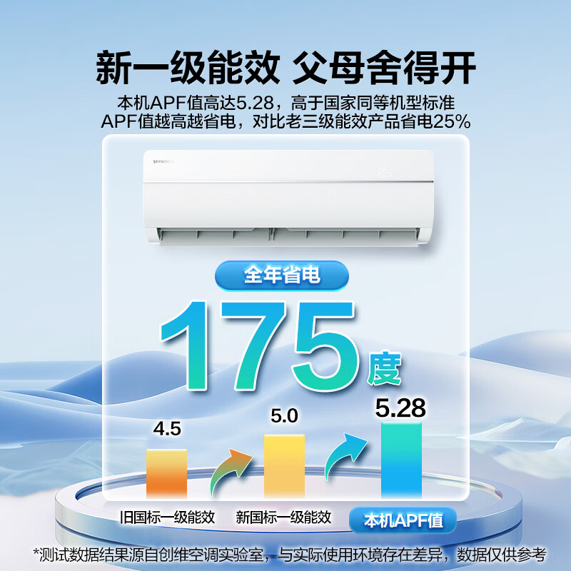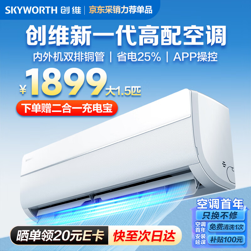 创维大1.5匹京智 新一级能效双排铜管超省电 变频冷暖 卧室壁挂式挂机 APP智能空调KFR-35GW/V3GM1J-N1价格:1899.00元!