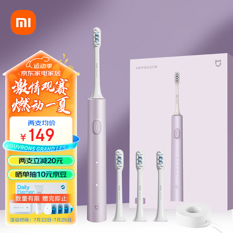 米家 小米电动牙刷T302成人/学生 4种净齿模式 150天续航 4支刷头 霜紫色 七夕情人节礼物推荐价格:159.00元!
