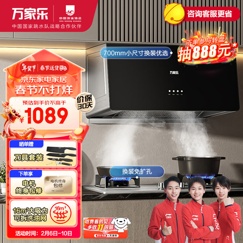 万家乐抽油烟机 中式油烟机套装16立方小尺寸大吸力小户型换新免扩孔不锈钢燃气灶套装AZ1+AY4G天然气价格:1089.00元!