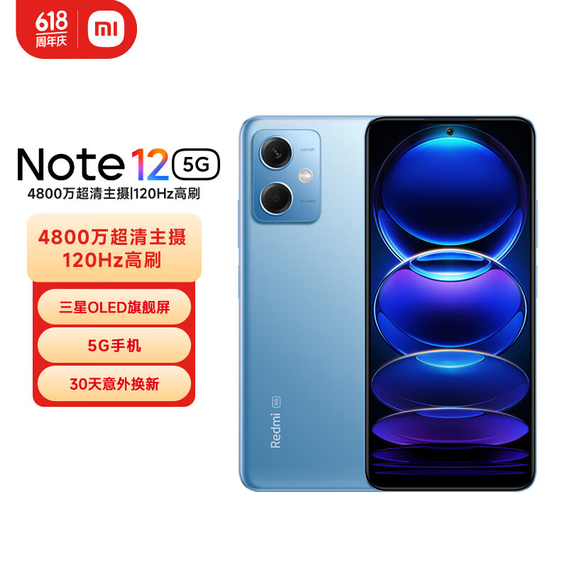 小米(MI)Redmi Note12 5G 120Hz OLED屏幕 骁龙4移动平台 5000mAh长续航 8GB+128GB时光小米红米价格:849.00元!