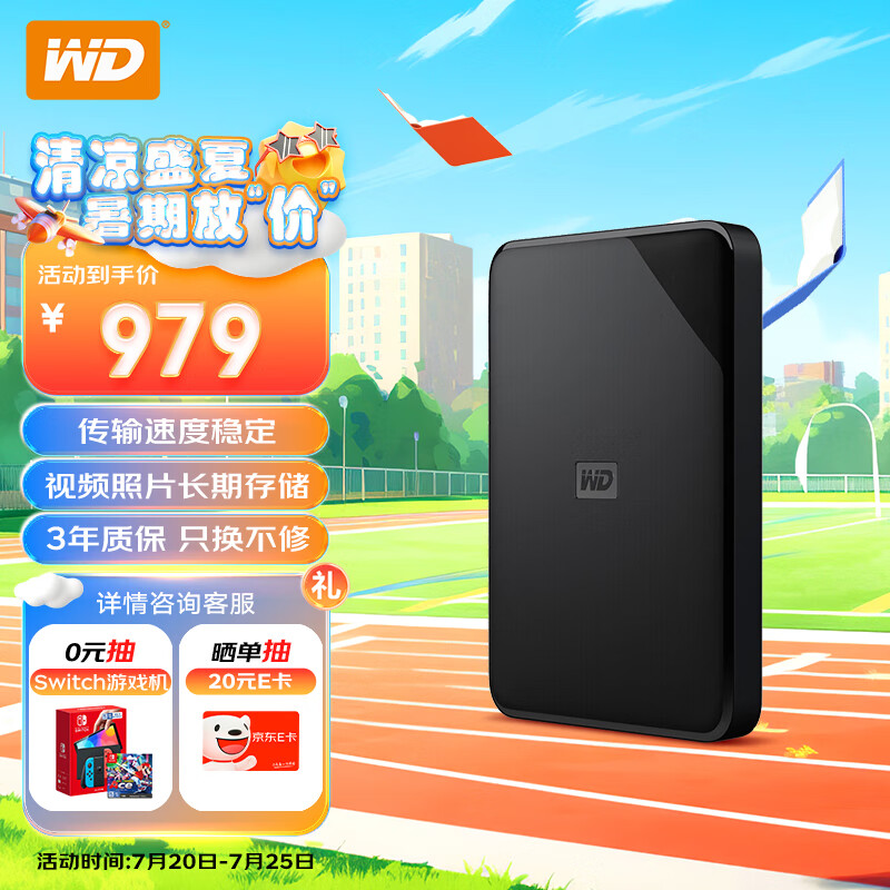 西部数据(WD)5TB 移动硬盘 USB3.0 SE系列 2.5英寸 机械硬盘 大容量 手机笔记本电脑外接 外置存储办公价格:979.00元!