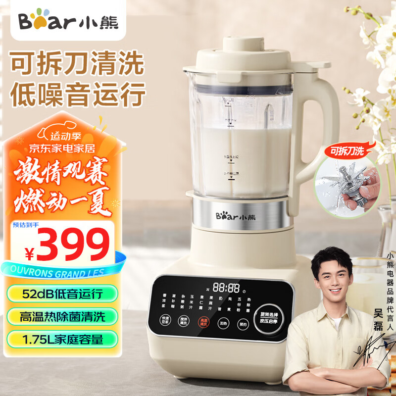 小熊(Bear)低音降噪破壁机 1.75L家用可拆洗豆浆机 多功能全自动米糊机 五谷杂粮料理机榨汁机 PBJ-D12V6价格:399.00元!